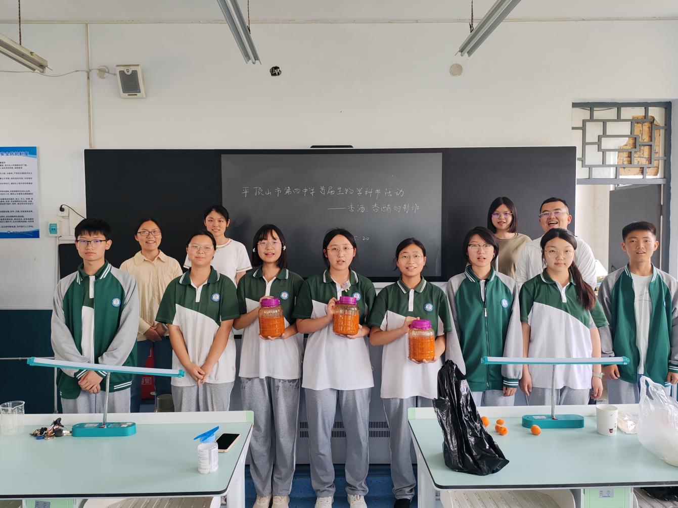 学做果酒果醋,感受“舌尖上的生物学”发表时间:2025-05-20 17:13 学做果酒果醋,感受“舌尖上的生物学” 平顶山市第四中学组织开展生物学科文化节活动 为丰富学生的校园文化生活,培养学生劳动实践能力和科学探究精神,5月20日,平顶山市第四中学生物学科组组织学生用杏子制作果酒、果醋,将传统发酵技术与劳动教育融合,让学生真实感受“舌尖上的生物学”。 此次活动是学校生物学科文化节活动之一。活动伊始,同学们前往学农劳动实践基地采摘成熟的杏子。在老师的指导下,大家小心翼翼地挑选颜色鲜艳、无病虫害的果实,以确保原材料的品质。